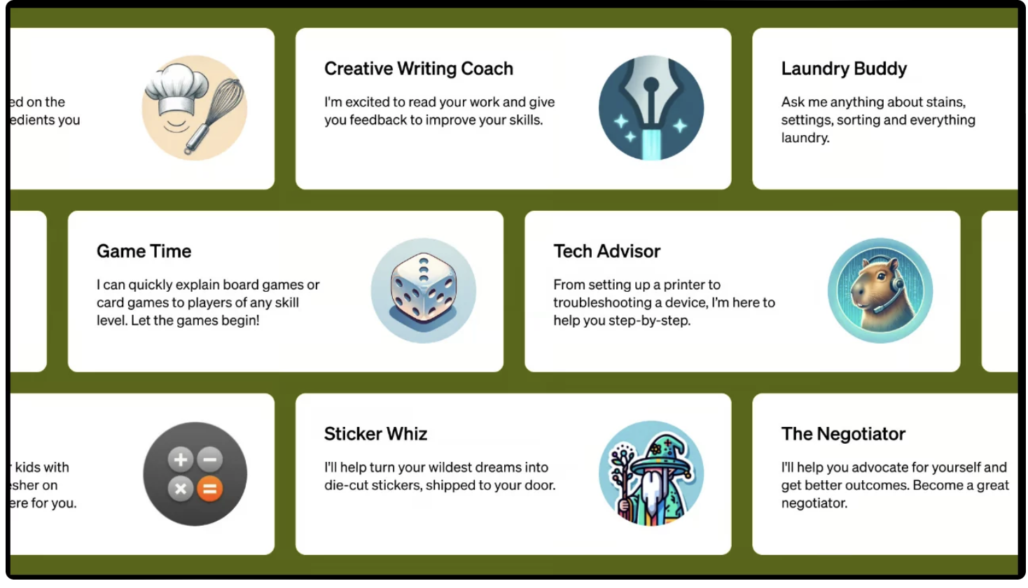 • GPTs로 인해, 개인/스타트업 등이 손쉽게 자체 서비스를 만들 수 있음.